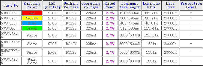 產(chǎn)品型號: 5050UW3-B-09-26-12VL